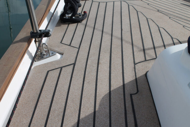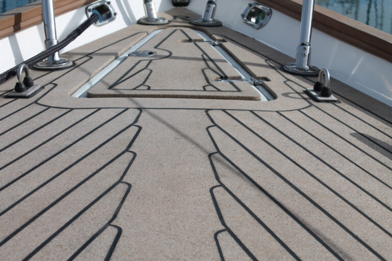 “Retriever” received a full Marinedeck 2000 deck installation and took advantage of the bespoke nature of Cork Composite and our ability to create designs such as monograms.