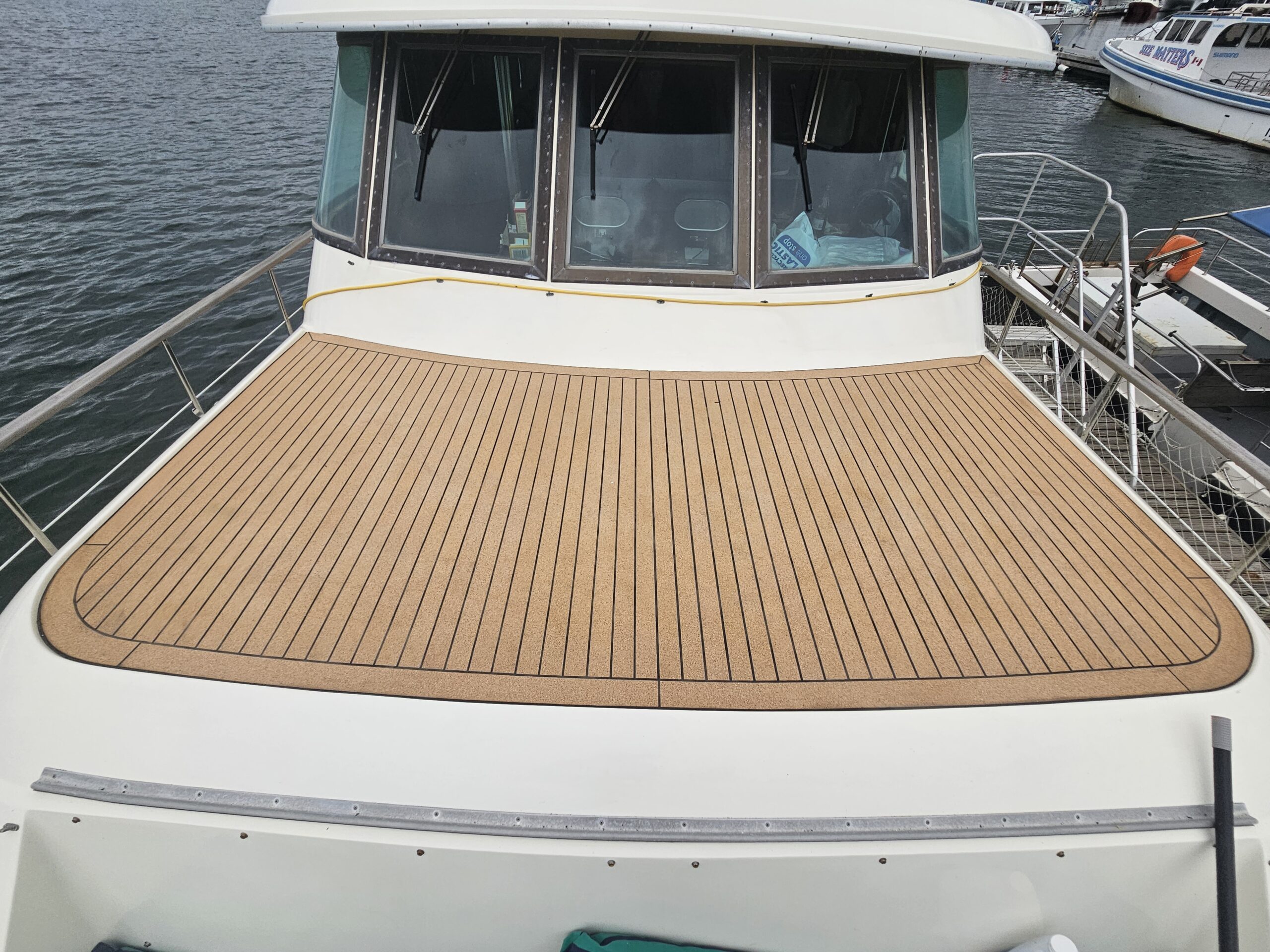 Mydos is a is a beloved houseboat that received a full exterior deck refurbishment with Marinedeck 2000. This boat also received cork decking within the hull for added thermal insulation. Cork is a great solution to bring comfort and longevity to every deck, from houseboats to racing yachts.
