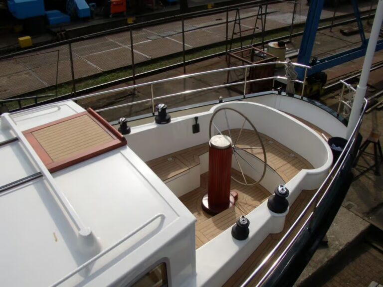 Developed by the Dutch company Stazo after years of research into sustainable teak alternatives, this innovative material has proven its exceptional durability and performance for over three decades on boats worldwide.
